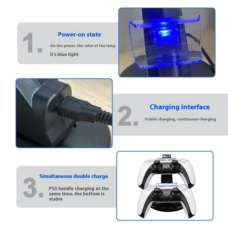 Station de recharge chargeur manette PS5 IPLAY HBP-253 avec USB-C et indicateur LED
